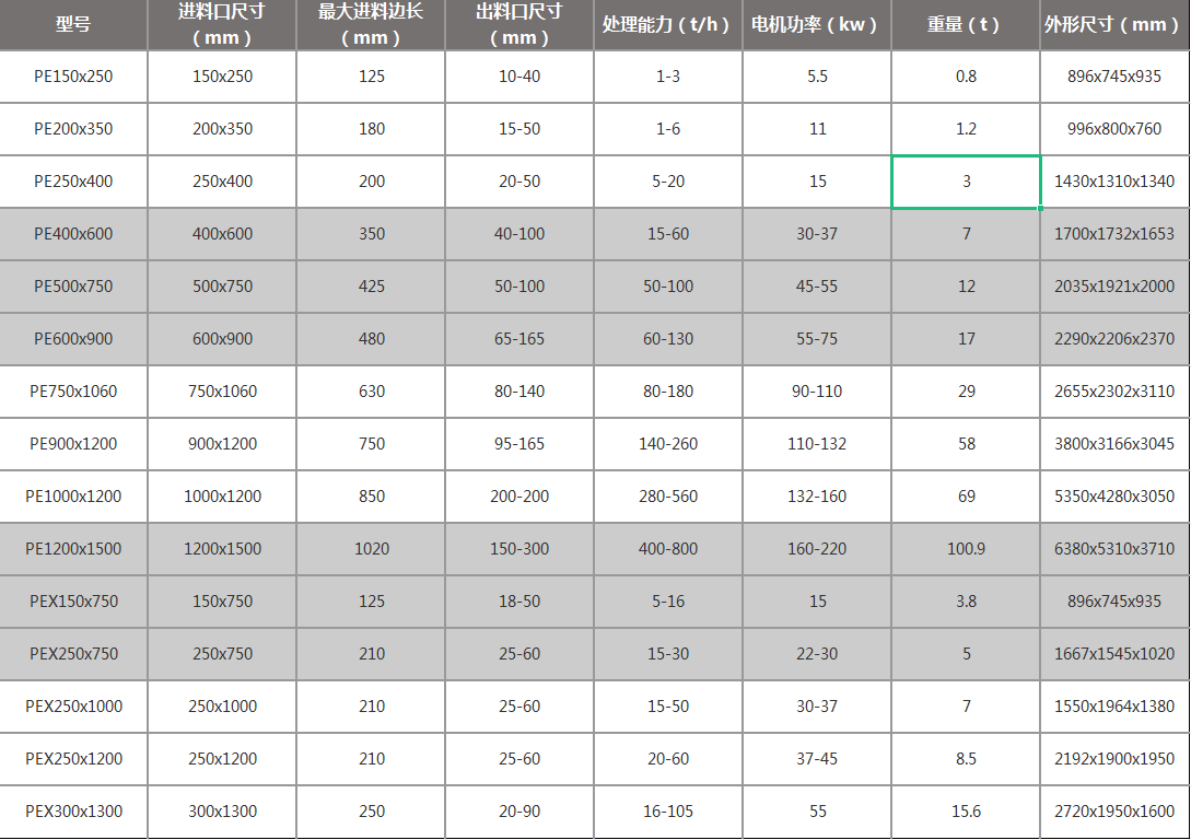 鄂式破碎機(jī)進(jìn)料尺寸在120-1020mm之間,進(jìn)料尺寸大,又稱“老虎口”主要用于破碎較大較硬的石塊,屬于粗碎設(shè)備,破碎腔大且沒(méi)有死區(qū),對(duì)于石塊較大的花崗巖需要首先使用顎式破碎機(jī)初級(jí)破碎。鄂式破碎機(jī)型號(hào)較多,具體需要根據(jù)物料大小和生產(chǎn)線規(guī)模來(lái)配置。