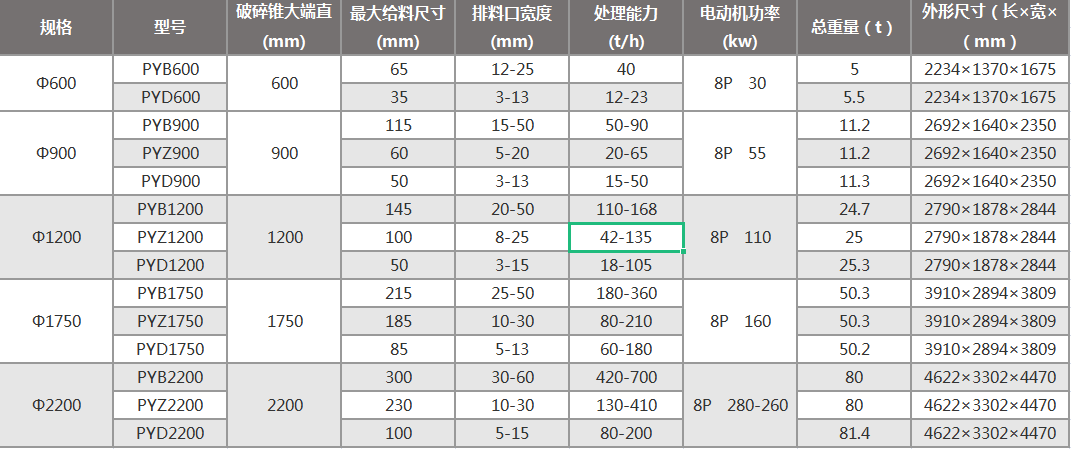 圓錐破碎機(jī)屬于二級(jí)破碎設(shè)備,進(jìn)料尺寸一般在35-300mm之間,是目前技術(shù)比較先進(jìn)的破碎設(shè)備,通過(guò)層壓破碎原理,成品粒型好,因此對(duì)于質(zhì)地較硬的花崗巖可以使用圓錐破碎機(jī)。粗破后的花崗巖石塊可以再次進(jìn)入圓錐破碎機(jī)二級(jí)破碎,圓錐破碎機(jī)的設(shè)備部件均是耐磨件,耐磨性好,維修成本低,且圓錐液壓破碎機(jī)自動(dòng)化程度更高,操作方便。圓錐破碎機(jī)不同型號(hào)處理能力不同,具體可以依據(jù)生產(chǎn)線的產(chǎn)能和規(guī)模來(lái)選擇。