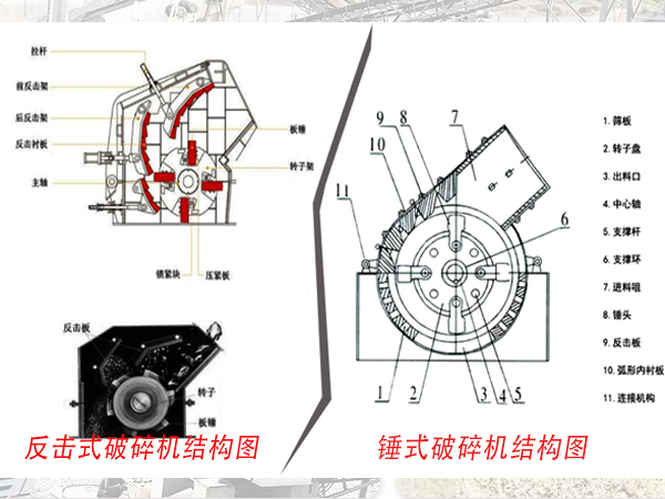 反擊式破碎機(jī)和錘式破碎機(jī)都可用于礦石破碎,同屬于中碎設(shè)備,因其外形相似,常被拿來做比較,那么他們具體的區(qū)別是什么呢?