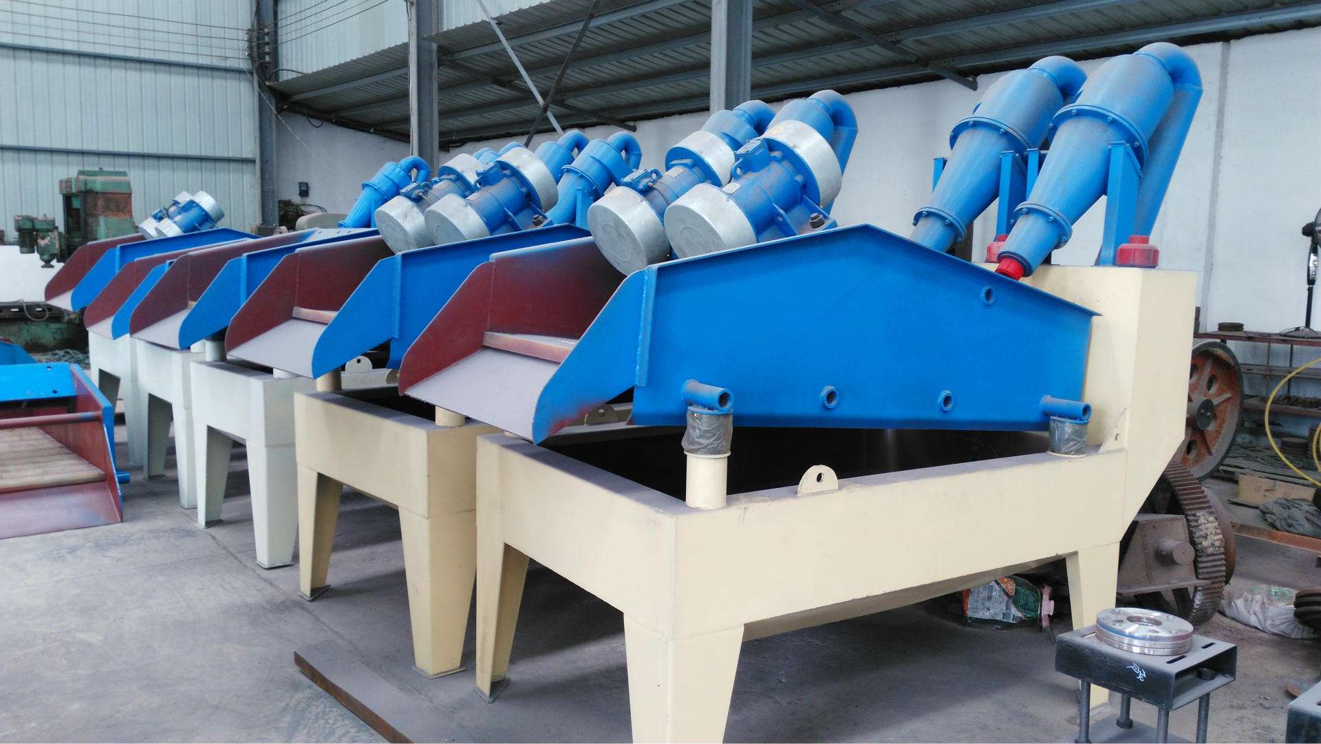 5.細砂回收機,可以將污水中可用的機制砂回收出來,避免堆入河道,另外一些沉淀物雜質(zhì)可以填埋。達到排放標準的廢水可以排入河道。