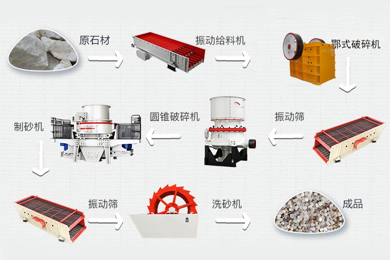 石英石制砂生產(chǎn)線主要分為粗碎、中碎、篩分和制砂等流程,可根據(jù)用料需求調(diào)整出料砂子粒度,出料可以控制在5mm以內(nèi)。由于其石粉含量較高且物料硬度較大,需要選擇的抗壓強(qiáng)度大且密封性較好的設(shè)備。