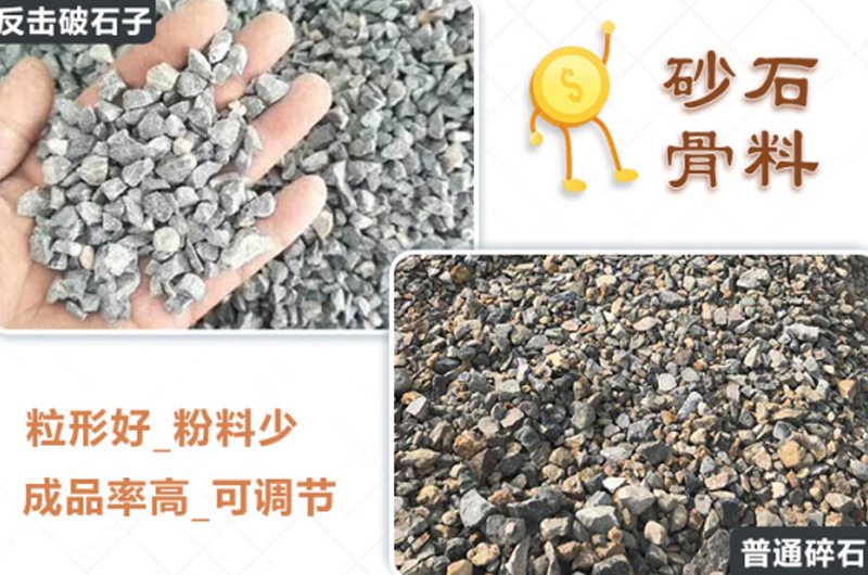 反擊式破碎機的破碎原理為物料經過板錘的高速沖擊破碎,之后被拋向反擊裝置再次破碎,從反擊襯板上彈回到板錘作用區(qū)重新破碎,區(qū)別于傳統(tǒng)的錘頭打石技術,反擊式破碎機出來的物料粒型更好,片狀物少,粒度大小和形狀可以調節(jié)。