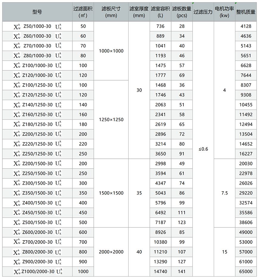 板框式壓濾機(jī) / 技術(shù)參數(shù)