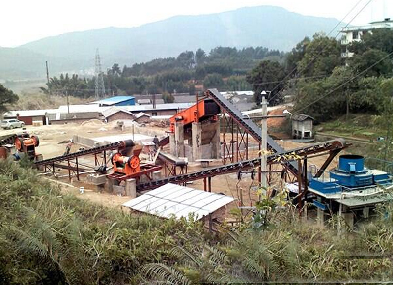 花崗巖生產(chǎn)線配置的設(shè)備有振動(dòng)給料機(jī)-鄂式破碎機(jī)-振動(dòng)篩-圓錐破碎機(jī)-制砂機(jī)和洗砂機(jī)等。分工合作完成大塊物料的初級破碎,二級破碎和制砂等流程。